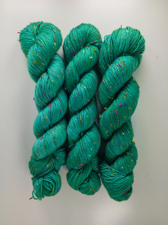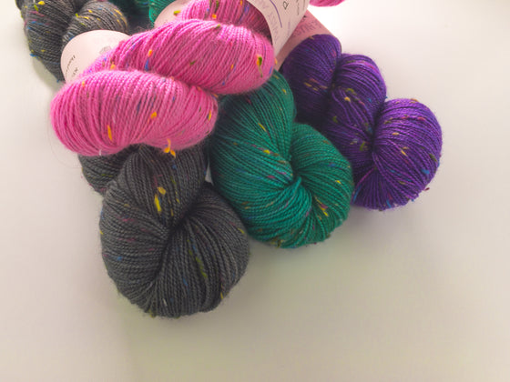 Fiber85% Superwash Merino, 15% Donegal Nep